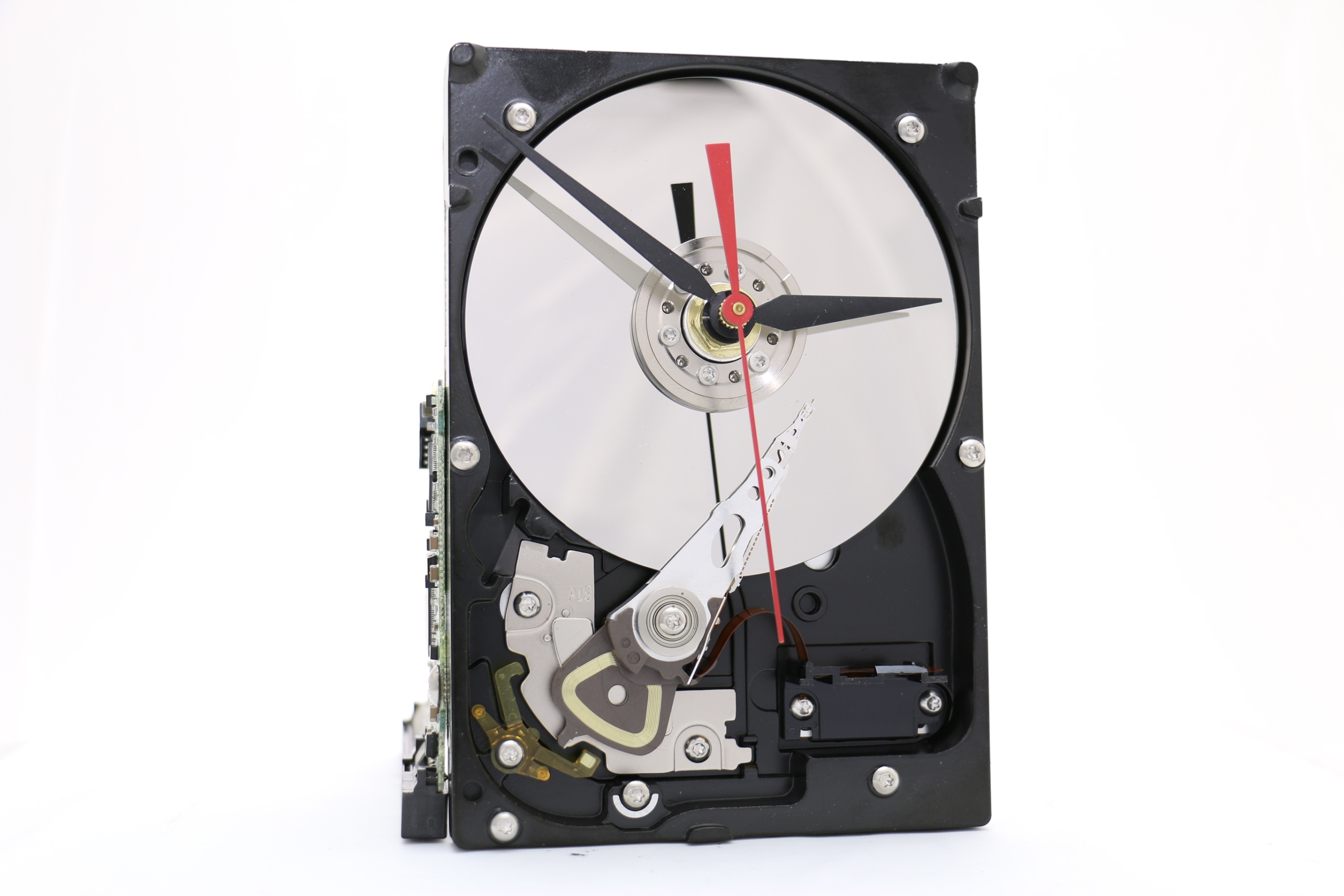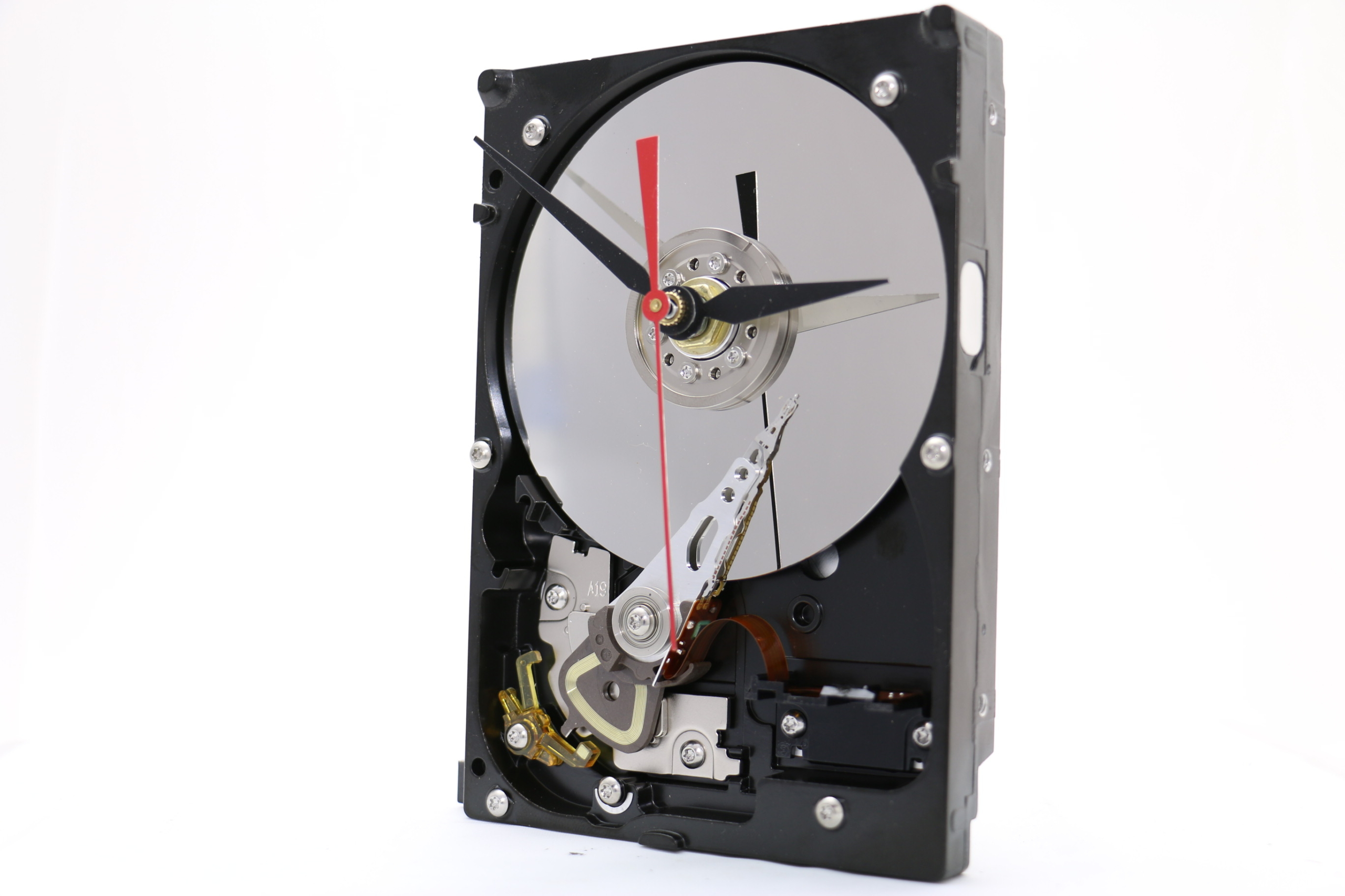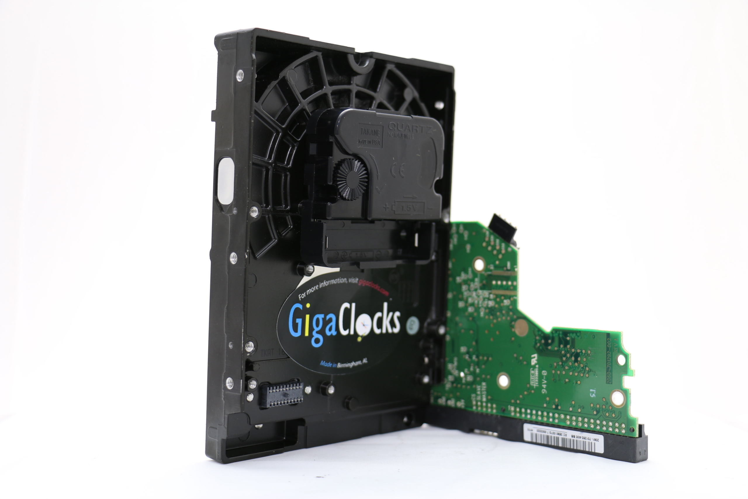 We have 2 color Clock hands to choose from, Black and White. You can also have the optional red second hand. The HDD clock is displayed using embedded circuit board.